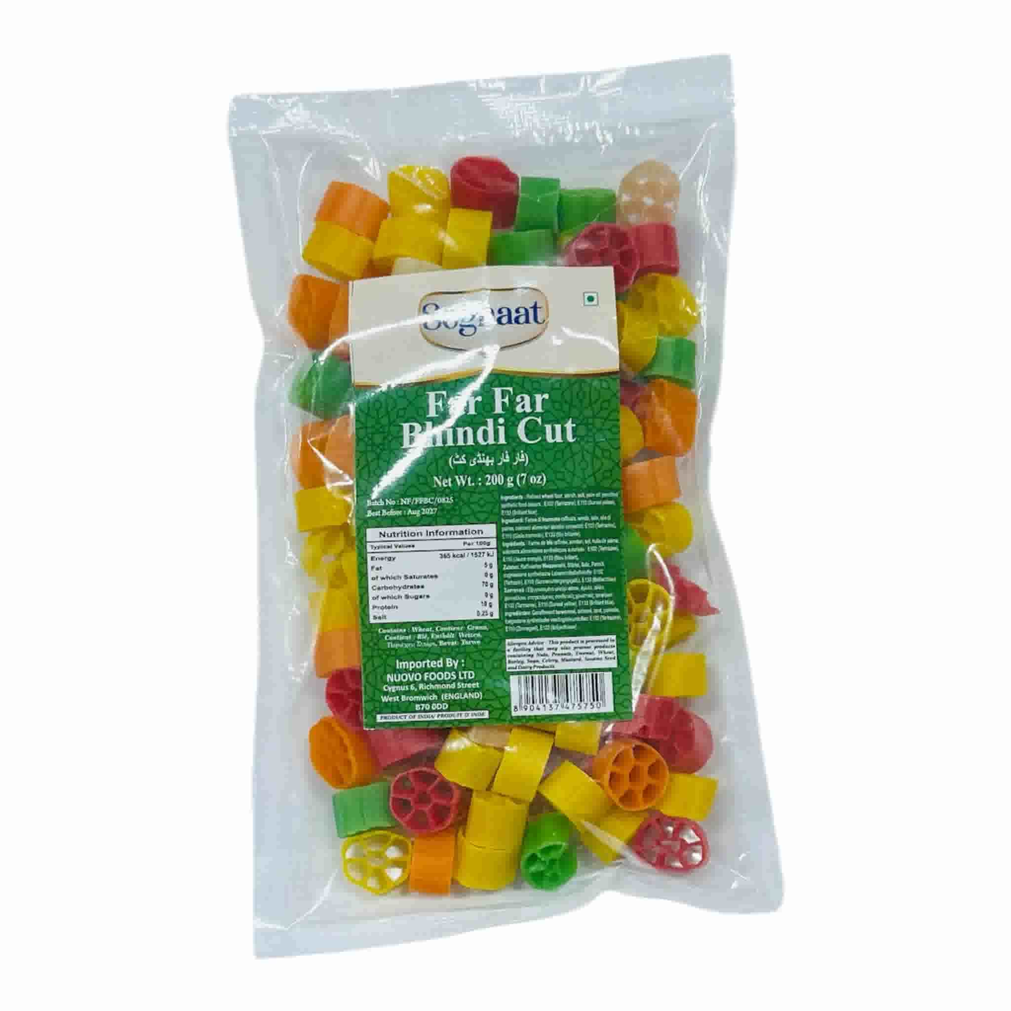 Soghat Far Far Bhindi Cut is a crunchy, ready-to-cook snack made from premium quality flour shaped like bhindi (okra) for a unique texture and traditional taste. Soghat Far Far Bhindi Cut is perfect for making golden-fried farfar at home, adding to chaat, or serving as a festive appetizer. Its light and airy texture ensures a crisp bite every time, delivering an authentic South Asian snack experience.